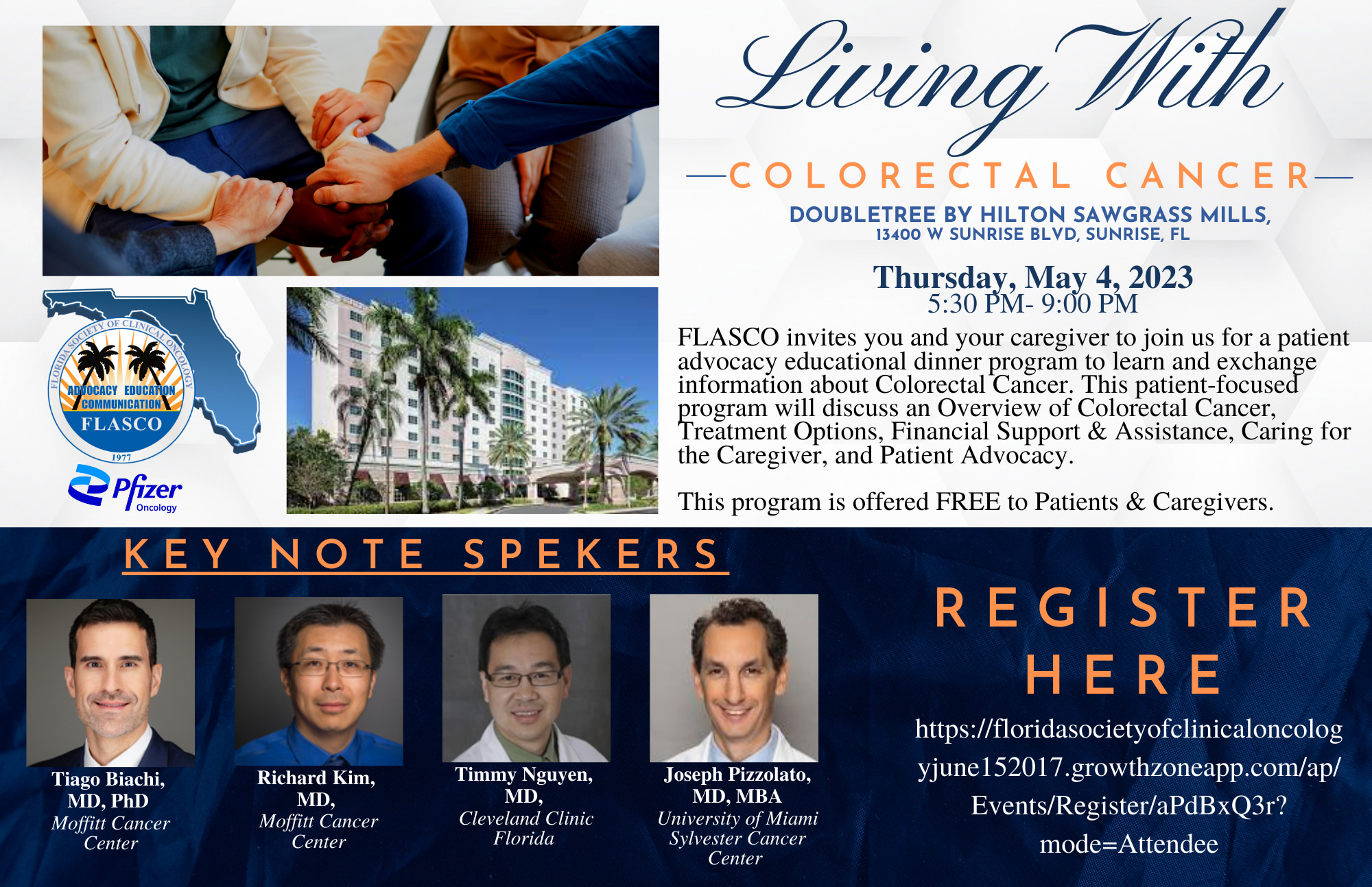 FLASCO invites you and your caregiver to join us for a patient advocacy educational program to learn and exchange information about Colorectal Cancer. This patient-focused program will discuss an Overview of Colorectal Cancer, Treatment Options, Financial Support & Assistance, Caring for the Caregiver, and Patient Advocacy.