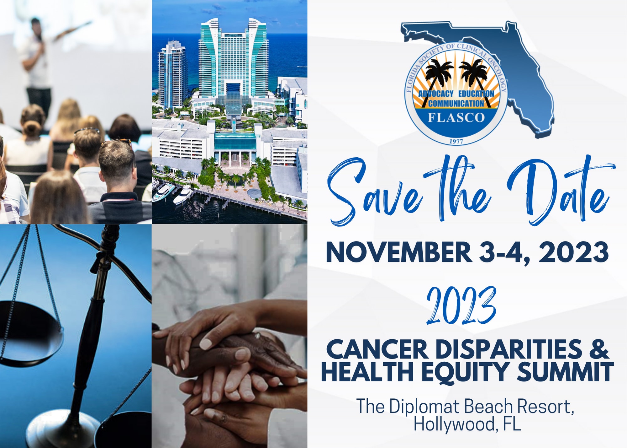Cancer disparities represent a major public health problem in our state, and across the country. FLASCO is following this important national dialog that calls for the need to do more to address disparities in cancer care, not only focusing on genetic and biological issues, but also social and cultural determinants of health that can have a strong influence in the clinical outcomes of our cancer patients. Great efforts are being made to bring together faculty and leaders from national organizations, oncology advocacy groups, clinicians, and pharmaceutical industry partners. Everyone’s involvement in this effort is necessary to achieve success. We are making great strides to increase the awareness of the need for a better health equity, improve clinical outcomes, educate our community, and involve payers, cancer advocates, and patients. This two-day conference in Hollywood, Florida will not only feature lectures, but also several round tables to promote dialogue among faculty and attendees.